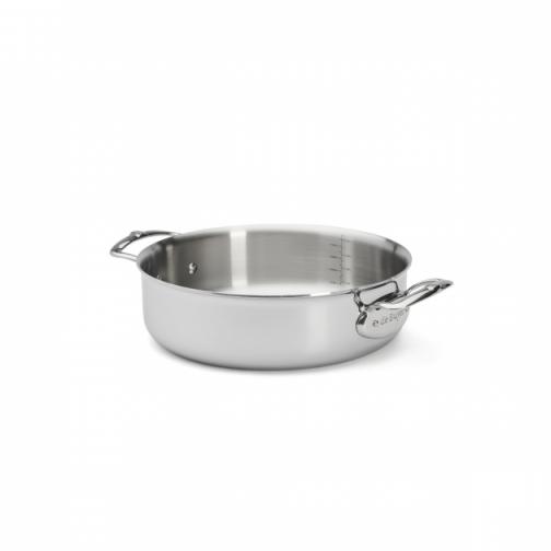 Sautoir Droit Affinity Ø 28 cm de Buyer Le sautoir droit Affinity 28 cm de Buyer est un ustensile se rapprochant fortement d’une sauteuse, mais avec 2 poignées au lieu d’un manche. Équipé d’un couvercle, le sautoir possède un revêtement multicouche, alliance entre l’acier inoxydable et l’aluminium. Ce matériau hyper réactif permet une conductibilité thermique optimale, ainsi qu’un arrêt instantané de la cuisson dès que vous mettez le sautoir Affinity hors du feu. Compatible tous feux dont induction, le sautoir de Buyer est particulièrement adapté pour sauter des petits légumes et des morceaux de viande. Conçu pour un usage quotidien, le sautoir inox possède 2 anses en fonte d’inox rivetées et ergonomiques. Ajoutez à cela que le sautoir avec couvercle est nettoyable au lave-vaisselle et vous obtenez un ustensile de cuisson pratique, performant et esthétique grâce à son design moderne et élégant. Le sautoir De Buyer Affinity 28 cm dispose de graduations gravées à l’intérieur de cette dernière facilitant vos préparations pour un équilibre des saveurs toujours maîtrisé. Les + produit : Bord verseur Matériau multicouche Compatible tous feux dont induction Graduations à l’intérieur Fabrication française Depuis 1830, de Buyer fabriquant français d’ustensiles de cuisine et de pâtisserie pour les Professionnels de la Haute-Gastronomie et les passionnés de cuisine. Elle imagine une gamme complète de poêles, casseroles, sauteuses et autres ustensiles de qualité Professionnelle. Caractéristique du sautoir : Sautoir avec couvercle 2 anses en fonte d’inox rivetées ergonomiques Matériau extérieur : Inox Forme : Droite Finition : Polissage miroir haut de gamme Diamètre : 28 cm Hauteur : 7,5 cm Épaisseur : 2,7 cm Capacité : 4,6 L Ustensile indéformable Matériau hyper réactif avec une montée en température très rapide et un arrêt instantané de la cuisson hors du feu Conductibilité thermique optimale Conseil : montée en température progressive conseillée (surtout sur induction) puisque l’inox diffuse exceptionnellement la chaleur Compatible tous feux dont induction Passe au lave-vaisselle Fabrication française Collection : Affinity Marque : de Buyer Entreprise engagée RSE, niveau confirmé Caractéristiques Matière : Inox Dimension : 28 cm Contenance : 4,6 l Type de feu Gaz Electrique Vitrocéramique Induction Four