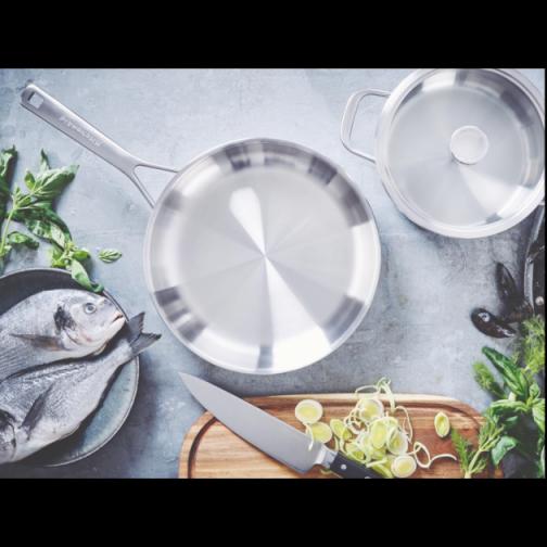 Sauteuse Inox 24cm KitchenAid Connaissez-vous le résultat de la fusion entre une poêle et une casserole Un ustensile ayant les avantages de l’un et de l’autre Il s’agit bien de la sauteuse ! Ustensile hybride par excellence, la sauteuse inox 24cm KitchenAid est un allié polyvalent dans votre cuisine. Vous recherchez une cuisson régulière Vous ne serez pas déçu avec la sauteuse inox, ses bords hauts, son corps en aluminium et son couvercle en verre trempé. Tout ceci donne une cuisson homogène, jusqu’en haut des bords de la sauteuse (aussi appelés « jupe »), et une cuisson contrôlée avec le couvercle, servant également à garder au chaud vos préparations. Avec une belle contenance de 3.1 litres et un diamètre de 24 cm, la sauteuse KitchenAid est idéale pour les plats familiaux et généreux. Griller une pièce du boucher, sauter une poêlée de légumes ou mijoter une ratatouille, tout est possible ! D’autant plus que la sauteuse inox est utilisable sur tous les feux, dont induction et four (jusqu’à 220C). D’un point de vue performances, la sauteuse inox 24cm n’est pas sans reste ! De fabrication allemande et garantie à vie, la sauteuse est dotée de la technologie Evershine, procurant à l’inox une longévité et une résistance extrême à la décoloration. De qualité professionnelle, le revêtement anti-adhésif 3 plis est particulièrement résistant grâce à sa technologie anti-écaillage. Pratique, performante mais aussi sécurisante, la sauteuse inox KitchenAid possède une poignée thermo-isolante, en forme de V, lui conférant une protection thermique supplémentaire. Son couvercle en verre tempéré est également utile pour éviter les éventuelles projections d’huile bouillante par exemple. Plus aucune raison de se priver ! Les + produit : Légère et polyvalente Inox de qualité professionnelle Fabriquée en Allemagne Garantie à vie Caractéristiques de la sauteuse : Sauteuse inox Poignée fixe Corps en aluminium Matériaux : Inox Diamètre : 24 cm Contenance : 3.1 L Anti-adhésive Compatible tous feux dont induction Passe au four jusqu’à 220C Légèreté et polyvalence Technologie anti-écaillage Système anti-gouttes Technologie Evershine qui évite la décoloration de l’inox Compatible lave-vaisselle Poignée thermo-isolante Garantie à vie Fabriquée en Allemagne KitchenAid Caractéristiques Matière : Inox Dimension : 24 cm Contenance : 3,1 l Type de feu Gaz Electrique Vitrocéramique Induction Four