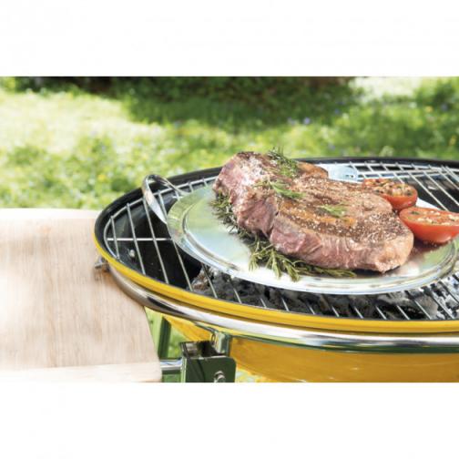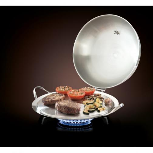 Set Plancha avec Accessoires O’Plancha Toutes les cuissons sont désormais à votre portée avec le Set Plancha Mastrad ! De la cuisson à l’étouffée, à la cuisson « teppanyaki » en passant par le fumage : tout est possible. La Plancha en Inox et Aluminium est compatible avec tous types de feux (induction, four, barbecue, etc.), ce qui vous permettra d’utiliser votre Set O’Plancha en toutes saisons. De plus, le triple fond de la plancha permettra une cuisson homogène et une chauffe rapide de vos aliments. Grâce au Couvercle en acier inoxydable, vous pourrez réaliser des cuissons à l’étouffée, ou encore garder au chaud vos plats plus longtemps. Le couvercle est muni d’une poignée sertie de silicone pour éviter tout risque de brûlure. De plus, un thermomètre est intégré à celui-ci, pour un suivi précis de votre cuisson. Par ailleurs, le couvercle ne salira pas votre plan de travail, car celui-ci peut être fixé aux charnières de la plancha. Pour des viandes juteuse, munissez vous de la poire à jus pour récupérer la sauce et arroser votre viande durant sa cuisson. Cela sera très simple, car le jus de votre viande ira se loger dans la rigole présente sur le pourtour de la plancha. Il ne vous reste plus qu’à vous régaler avec vos convives avec cette plancha de 32 cm de diamètre et ses accessoires ultra-pratiques ! Et si vous manquez d’idées, vous trouverez des recettes originales dans le livre de recettes fourni avec le Set Plancha. Les + produit : Garantie à vie Compatible tous feux (y compris induction) Couvercle avec thermomètre intégré Nombreux accessoires Caractéristiques du Set Plancha : Set Plancha avec Accessoires Set comprenant : 1 Plancha 1 Couvercle 2 Poignées amovibles 1 Mini-poire à sauce 2 Grilles 1 Livre de recettes Plancha en acier inoxydable 18/10 et aluminium Diamètre de la plancha : 32 cm Poids de la plancha : 2,13 kg Épaisseur de la plancha : 8 mm (triple fond) Couvercle en acier inoxydable 18/10 Diamètre du couvercle : 31 cm Thermomètre intégré au couvercle Poignées amovibles en silicone Garantie à vie Gamme : O’Plancha Mastrad