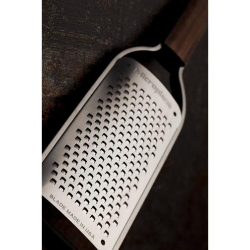 Râpe Gros Grains Master Manche en Bois Microplane Quand il s’agit de cuisiner, les bons outils font toute la différence. C’est pourquoi Microplane a conçu sa râpe Gros Grains, afin de vous garantir un résultat parfait à chaque utilisation. Robuste et affûtée, la râpe Gros Grains est idéale pour une grande variété d’aliments. Grâce à sa conception de qualité, vous profitez d’une découpe nette et rapide, que ce soit pour des légumes croquants, des fromages fondants, des fruits ou des épices parfumées. Vous obtenez des râpures ni trop fines, ni trop grosses, qui préservent les saveurs naturelles des aliments. Cette râpe, issue de la collection Microplane Master, se distingue par ses performances exceptionnelles. Sa lame en acier inoxydable est fabriquée selon un procédé photochimique qui lui offre un affûtage exceptionnel. Ainsi, la râpe Microplane découpe chaque aliment avec une grande précision, et cela, sans le moindre effort. Peu importe la texture des aliments, la râpe inox offre un résultat uniforme à chaque fois. Cette râpe professionnelle est aussi efficace que raffinée. Son manche en bois, au toucher chaleureux et naturel, contraste magnifiquement avec la lame en inox, apportant une touche de caractère à toutes les cuisines. En plus d’offrir une prise en main confortable, la râpe Microplane possède une extrémité en caoutchouc antidérapant qui offre une excellente stabilité pendant son utilisation. Fabriquée à partir de matériaux de qualité supérieure, cette râpe de cuisine est faite pour durer et vous accompagner dans tous vos moments passés en cuisine. Elle rend chaque préparation plus rapide et plus agréable, pour que vous puissiez passer moins de temps à râper et plus de temps à savourer vos plats. Les + produit Râpe une grande variété d’aliments Lame ultra-affûtée par photochimie Cadre robuste en acier inoxydable Extrémité en caoutchouc antidérapant Manche en noyer du Kentucky Utilisation recommandée : Nous vous conseillons d’utiliser la râpe Gros Grains avec des aliments tels que le fromage, les carottes, le gingembre, la noix de coco, les noix et le raifort. Grâce à sa robustesse et son affûtage, elle conviendra à beaucoup d’autres aliments. Caractéristiques de la Râpe Gros Grains Master Manche en Bois Microplane : Râpé Gros Grains Qualité professionnelle Cadre robuste Design élégant Lame ultra-affûtée Manche en noyer du Kentucky Extrémité en caoutchouc antidérapant Étui de rangement inclus Matière : Acier inoxydable haut de gamme Dimension : 30 x 6,8 x 1,5 cm Poids : 270 grammes Produit affûté selon un procédé photochimique Made in USA Entretien : Rincer sous l’eau et sécher la râpe après utilisation. Ne passe pas au lave-vaisselle. Il est nécessaire de traiter le bois avec un produit adapté aux aliments. Utilisations : fromage, carottes, gingembre, noix de coco, noix, raifort Collection Master, récompensée par le Red Dot Award : Product Design 2017 Marque : Microplane Caractéristiques Matière : Acier Inoxydable, Bois Dimension : 30 cm